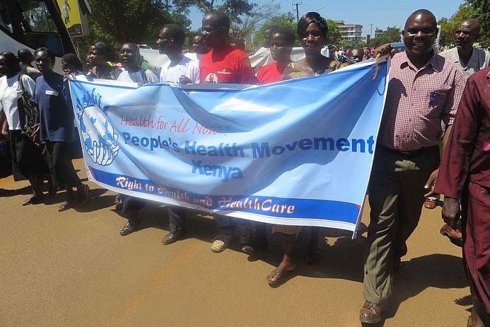 Das People’s Health Movement Kenya (PHM Kenya), eines der stärksten nationalen Netzwerke in der globalen Struktur des PHM, setzt sich dafür ein, dass das Gesetz nicht nur auf dem Papier besteht. So erzeugt es öffentlichen Druck und organisiert auf Gemeindeebene die Beteiligung von Communities an der SHIF-Reform. Im Mittelpunkt steht die Stärkung von basisnahen Gesundheitskomitees und die Vernetzung von zivilgesellschaftlichen Organisationen, Berufsverbänden und Medien, um sich gemeinsam für die Verwirklichung des Rechts auf Gesundheit stark zu machen.